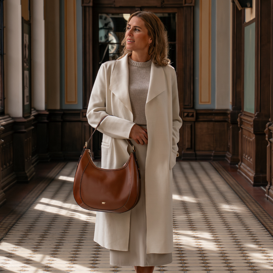 Für eine moderne City-Hochzeit stehen Minimalismus und Chic im Vordergrund: klare Linien, monochrome Farben und moderne Schnitte prägen diesen Stil. Elegante Kleider oder Hosenanzüge und stilvolle Accessoires unterstreichen das urbane Flair. Besonders passend sind ein geradlinige Modelle, die dem Look subtile Eleganz verleiht und gleichzeitig praktisch ist. Ledertaschen in minimalistischen Designs wie kompakte Umhängetaschen oder trendige BoxBags setzen stilvolle Akzente und runden das Outfit perfekt ab. Zeigen Sie Stilbewusstsein mit einem klaren, urbanen Look, der Funktionalität und Eleganz ideal verbindet.