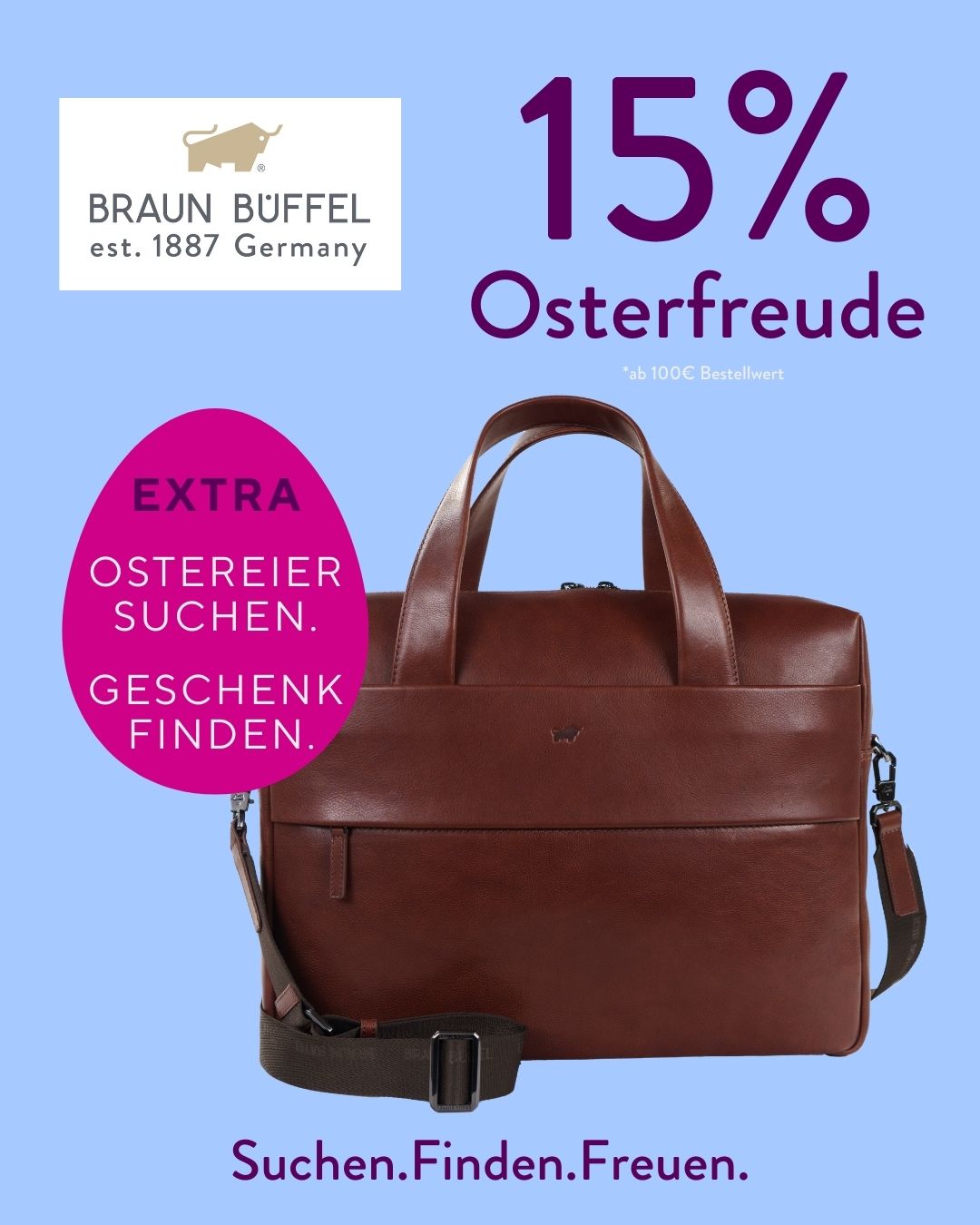 At Easter, BRAUN BÜFFEL offers you double the joy: Discover high-quality leather accessories and benefit from our Easter promotion with a 15% discount on orders over €100 .