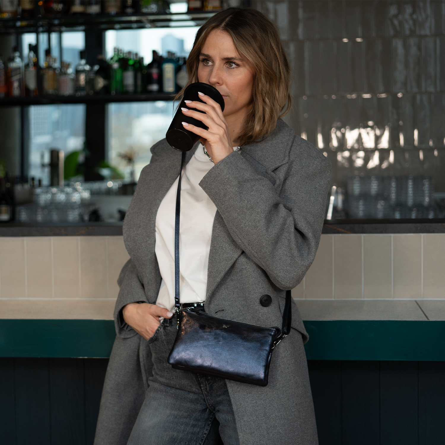 The RUBY mini wallet impresses with its clean, minimalist design made of smooth cowhide with a soft, cool feel and a trendy metallic effect. Its handy format with RFID protection makes it a practical companion, and its streamlined design with no visible seams underscores its modern look—available in two elegant colors.